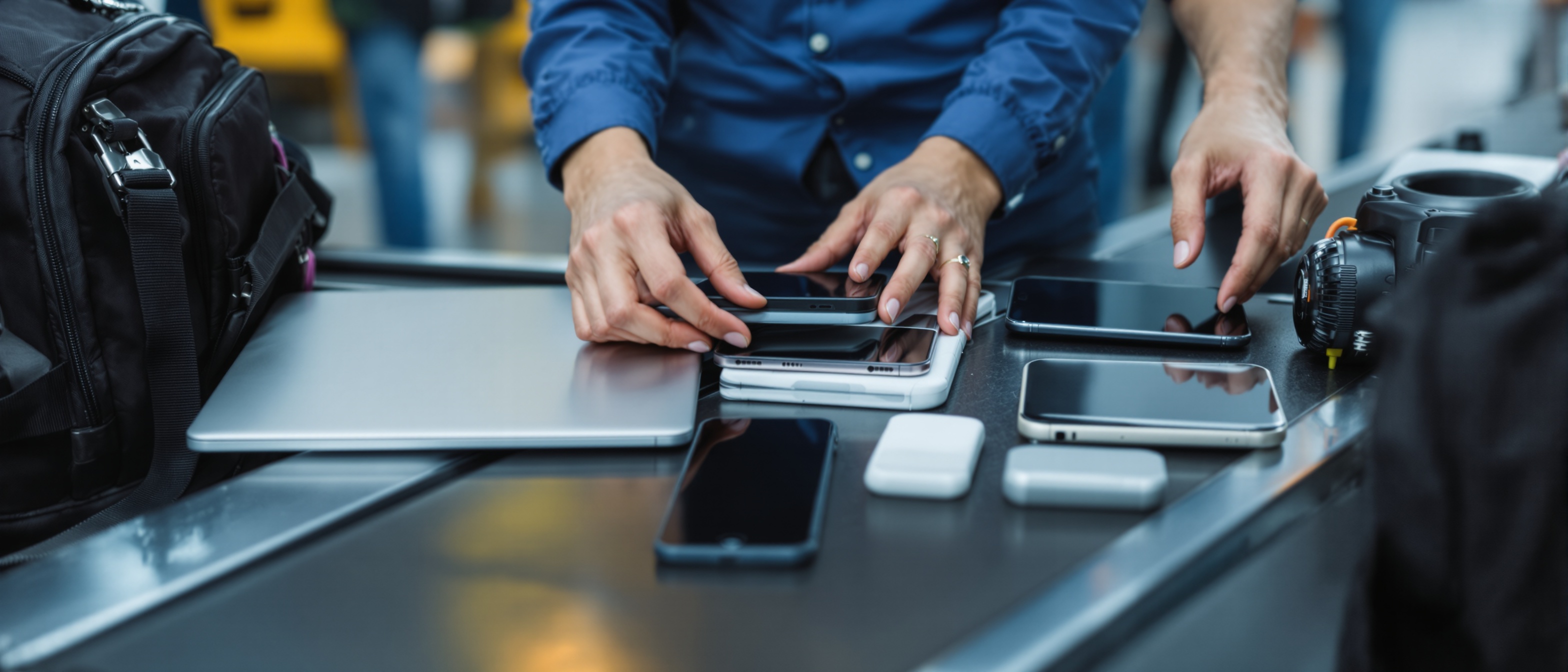 Laptops, tablets, power banks, and devices with lithium batteries require special screening and have capacity limits.