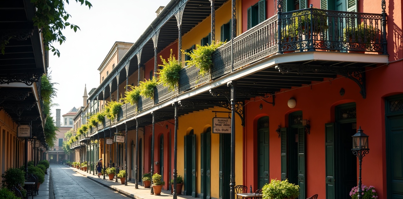 French Quarter's iconic wrought-iron balconies and Creole architecture